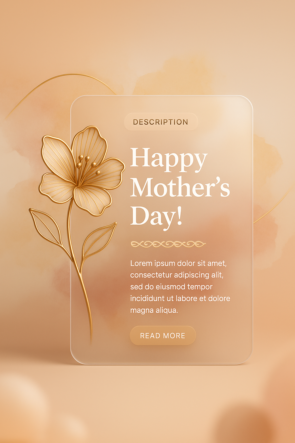 /Collection: /by davooda/Type: PNG/A beautiful abstract card design for Mother's Day featuring elegant calligraphy, a golden line art flower, and a soft gradient background, perfect for celebration.