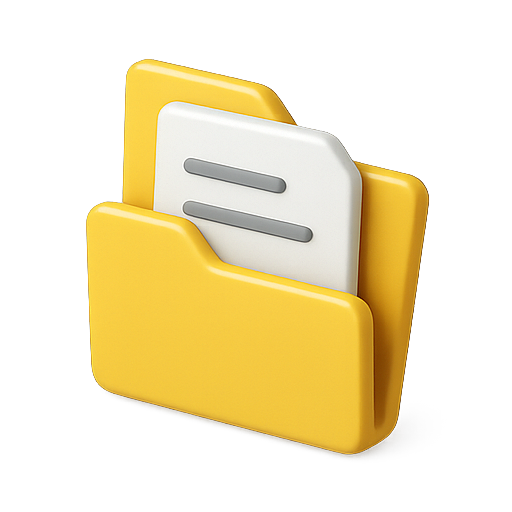 Stylized 3D icon depicting a yellow folder with a white document, suitable for digital applications, representing file management and organization.