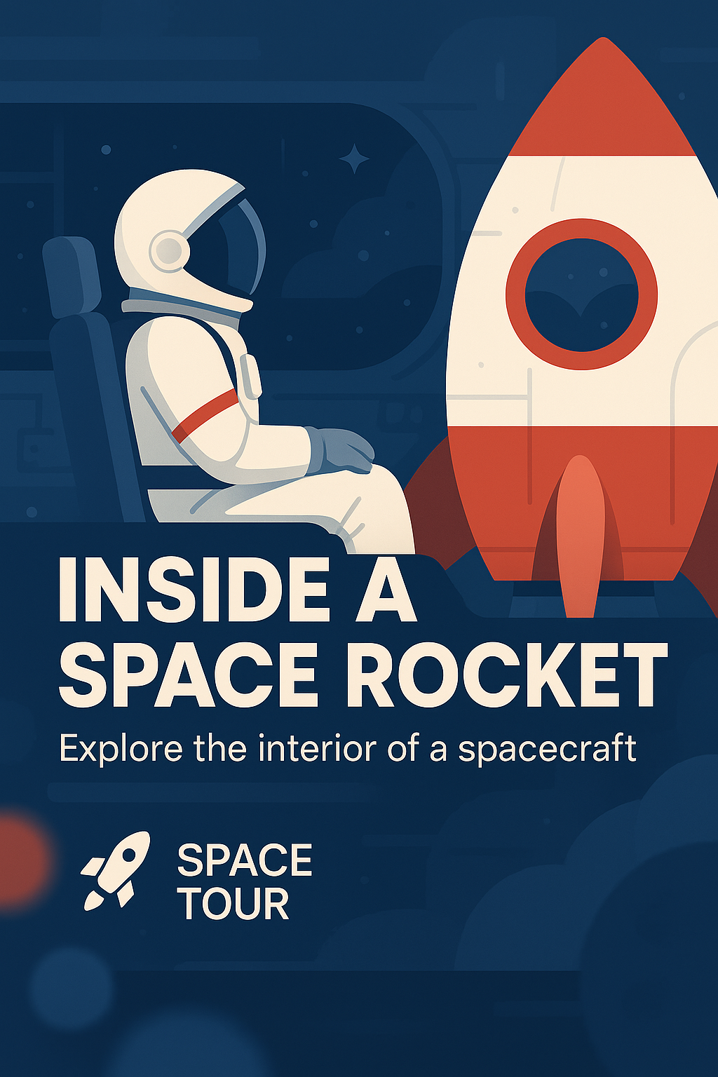 Illustrative Space Tour Poster Featuring Astronaut and Rocket