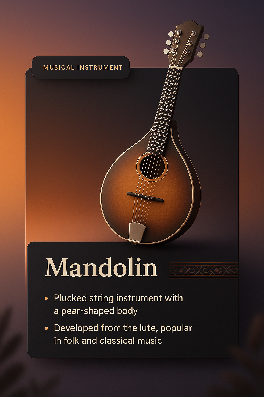 /Collection: /by davooda/Type: PNG/A beautifully designed 3D illustration of a mandolin, featuring a dark overlay with descriptive text. The background transitions smoothly, enhancing the visual appeal.