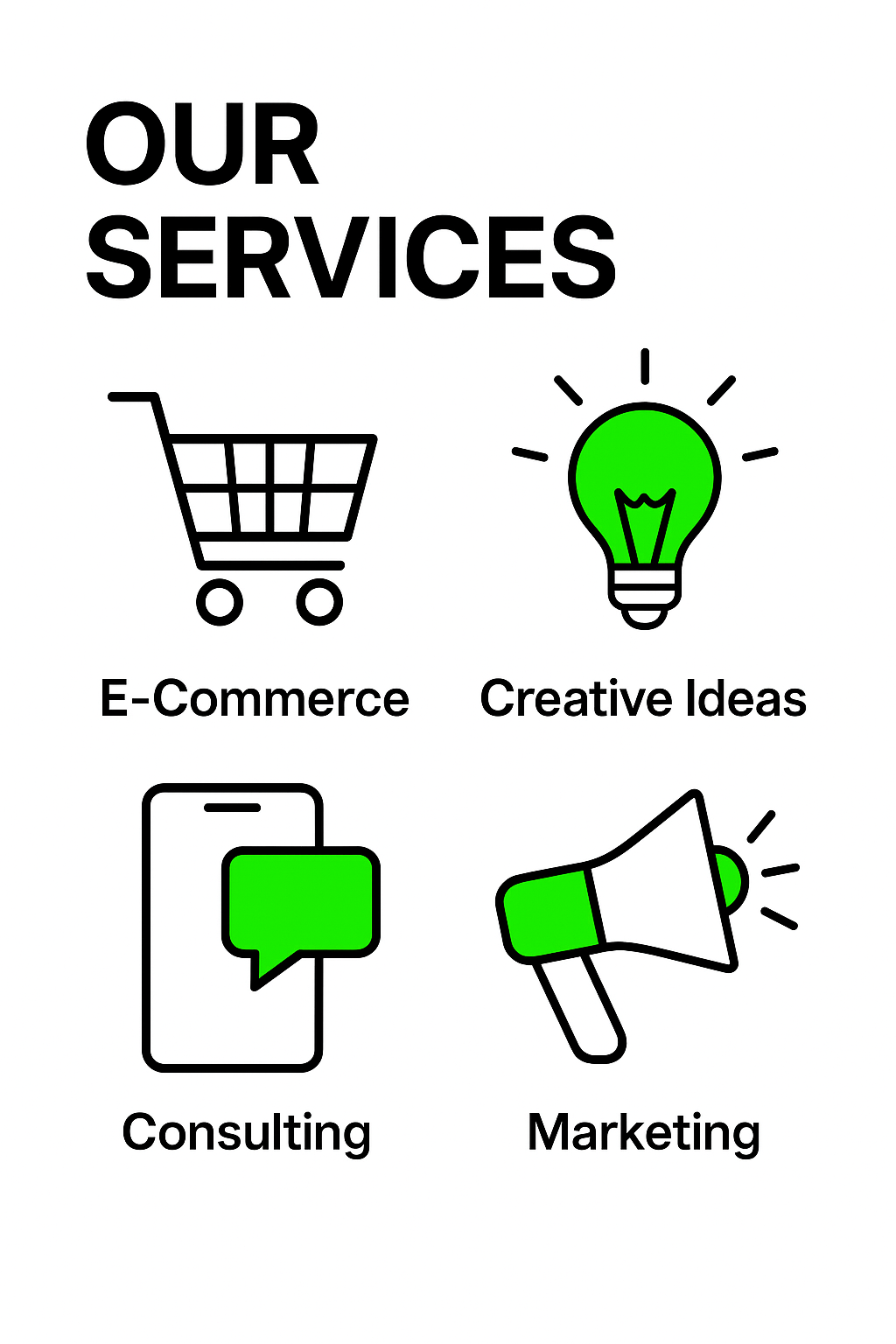 Minimalist infographic showcasing service offerings with simple icons and text, ideal for business presentations or service promotion.