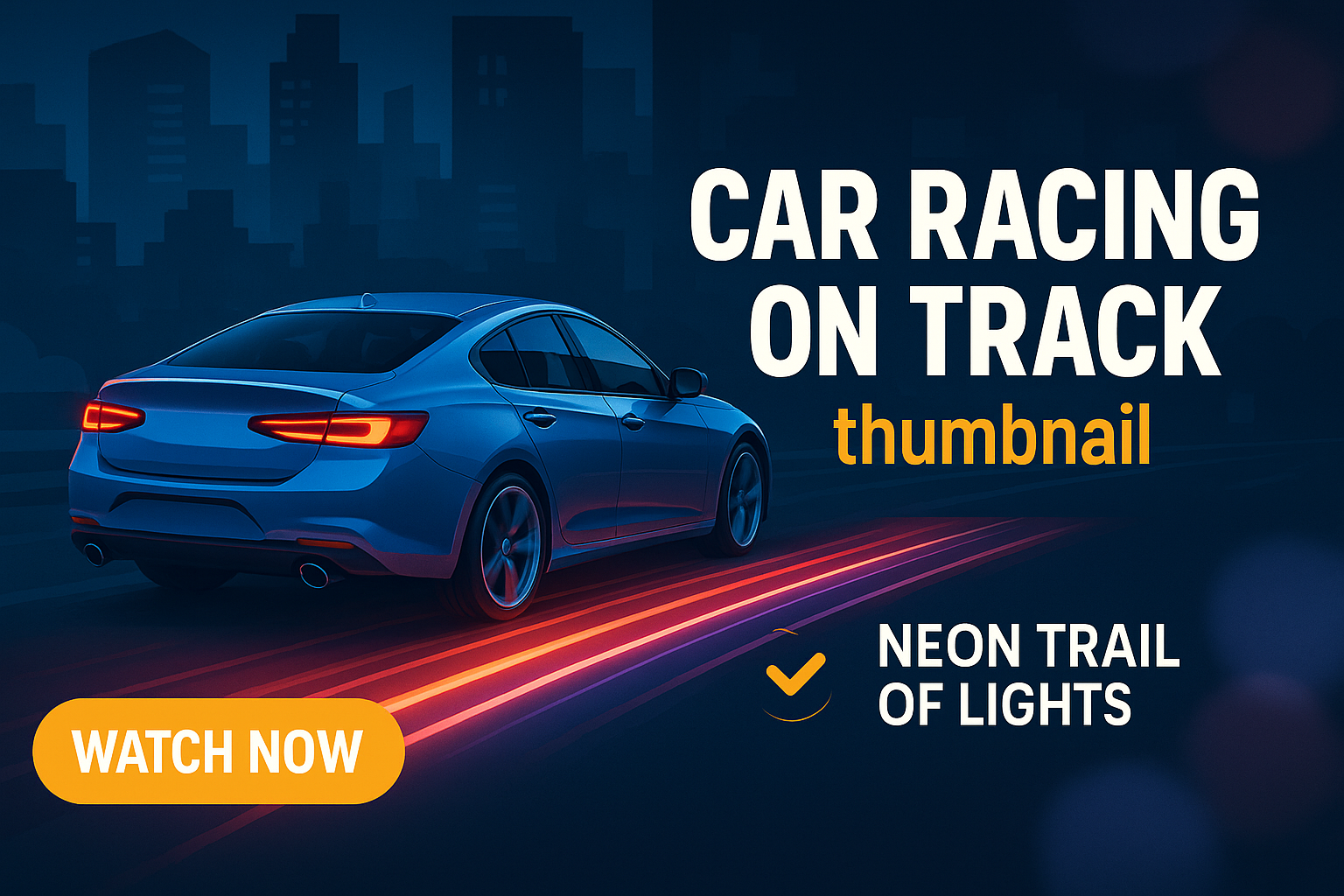 Vibrant thumbnail design featuring a car on a racetrack with neon light trails. Ideal for video content related to automotive racing, appealing to car enthusiasts.