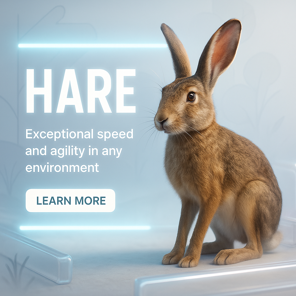 A detailed 3D render of a hare showcasing its features, emphasizing speed and agility. The modern design is ideal for wildlife education or promotional content.