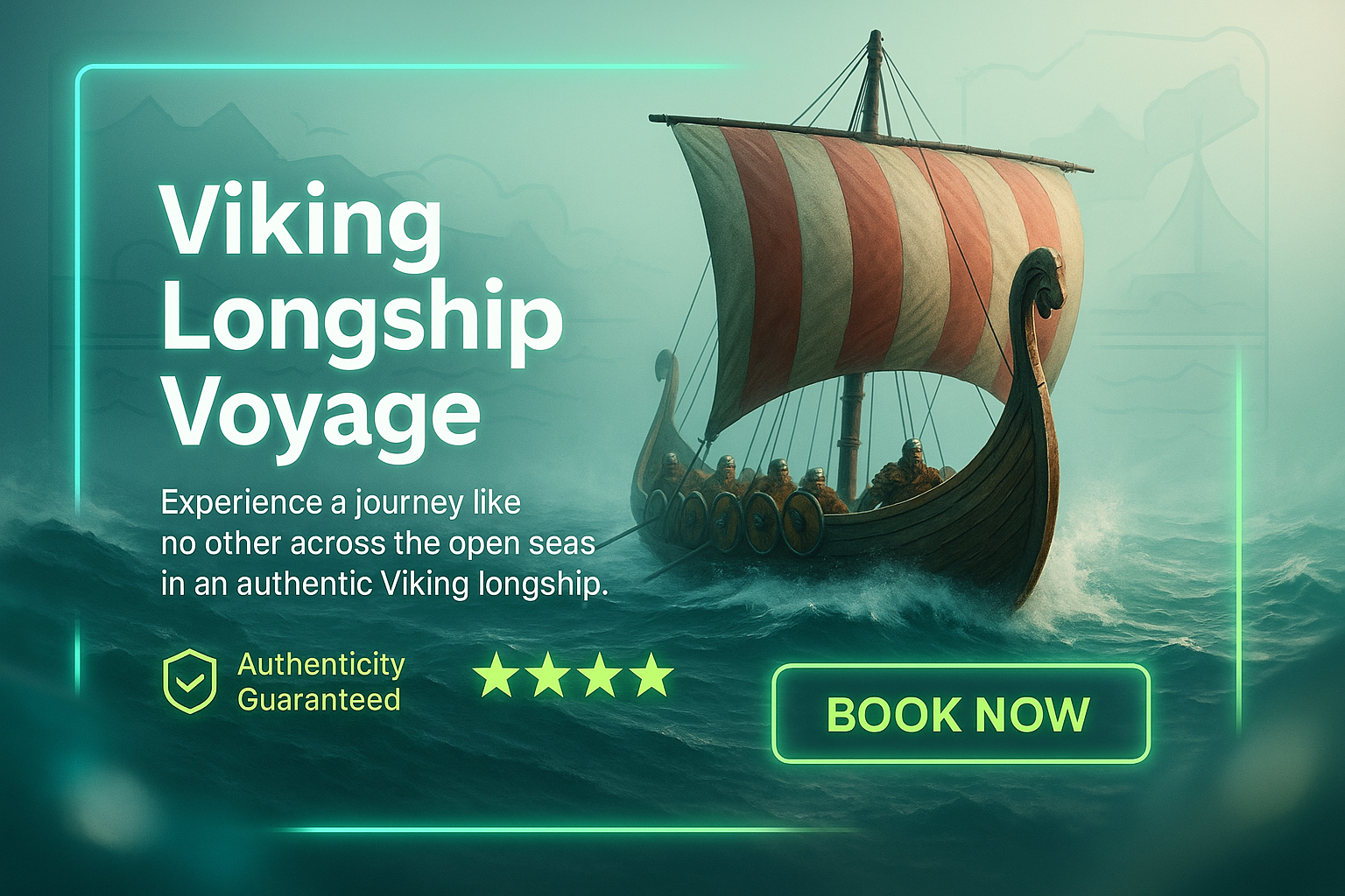 Promotional Travel Ad for Viking Longship Voyage Experience
