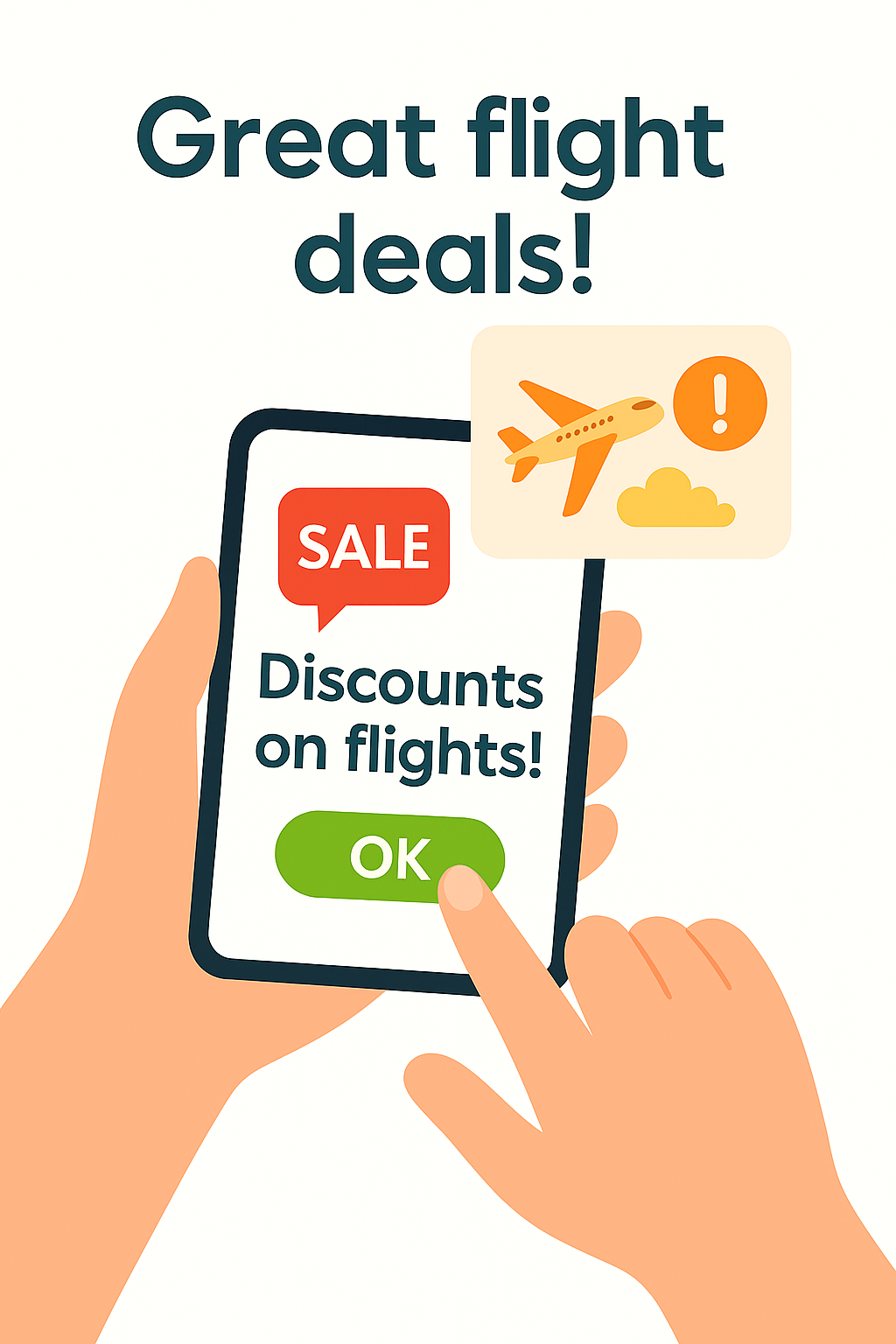 Promotional Graphic for Flight Discounts Featuring Mobile Device