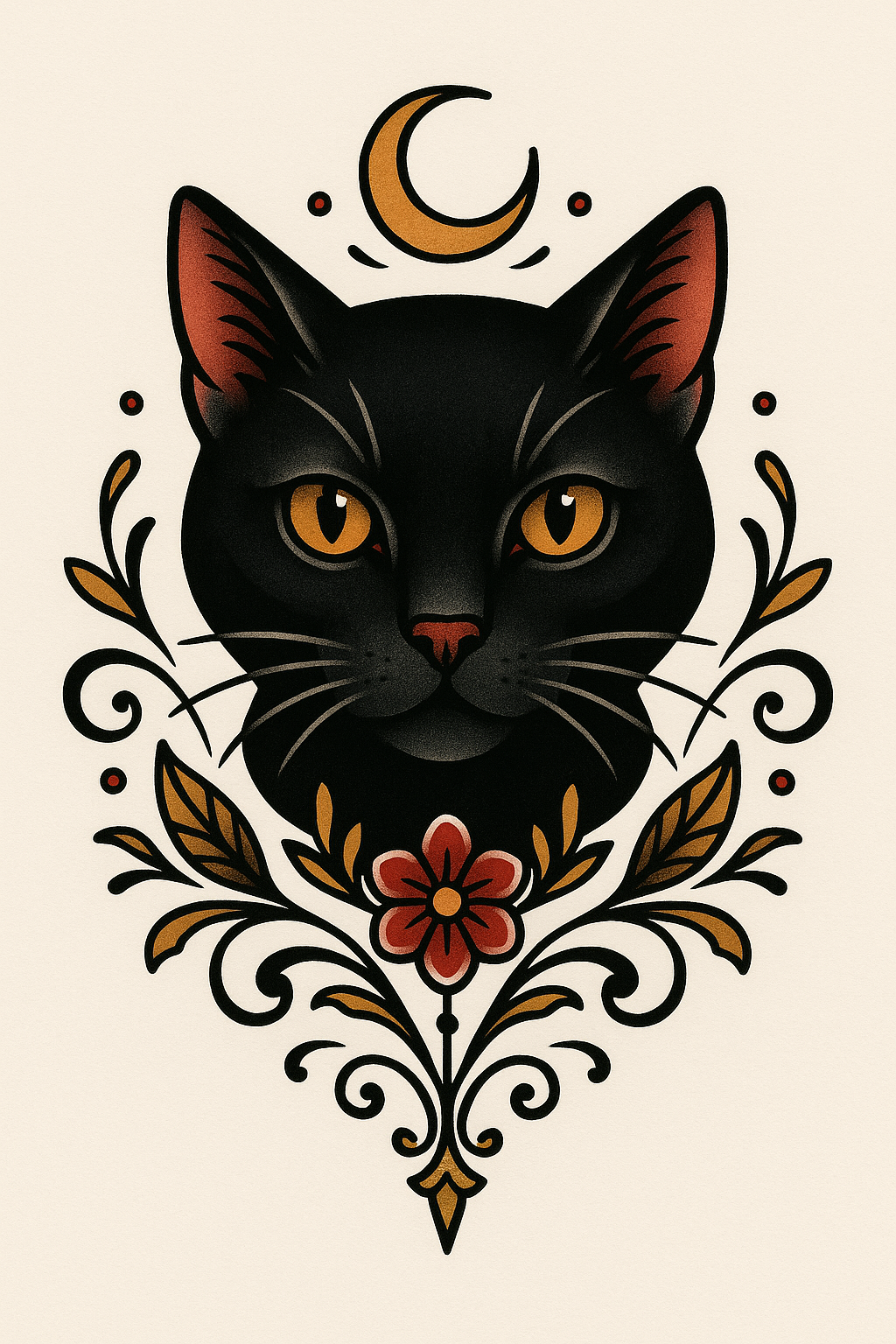 Stylized Black Cat Illustration with Floral Elements