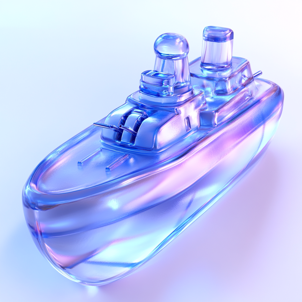 Stylized 3D rendering of a translucent ship model, featuring soft pastel colors and smooth curves, ideal for modern design projects or digital art showcases.
