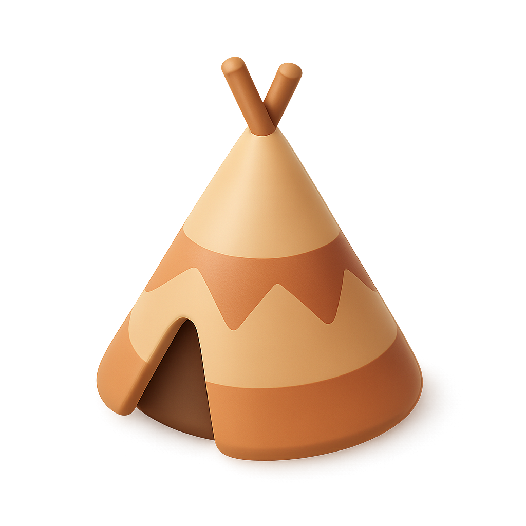 A visually appealing 3D representation of a tent, featuring warm earthy colors and a simple design. This icon showcases a classic teepee structure with a smooth finish.