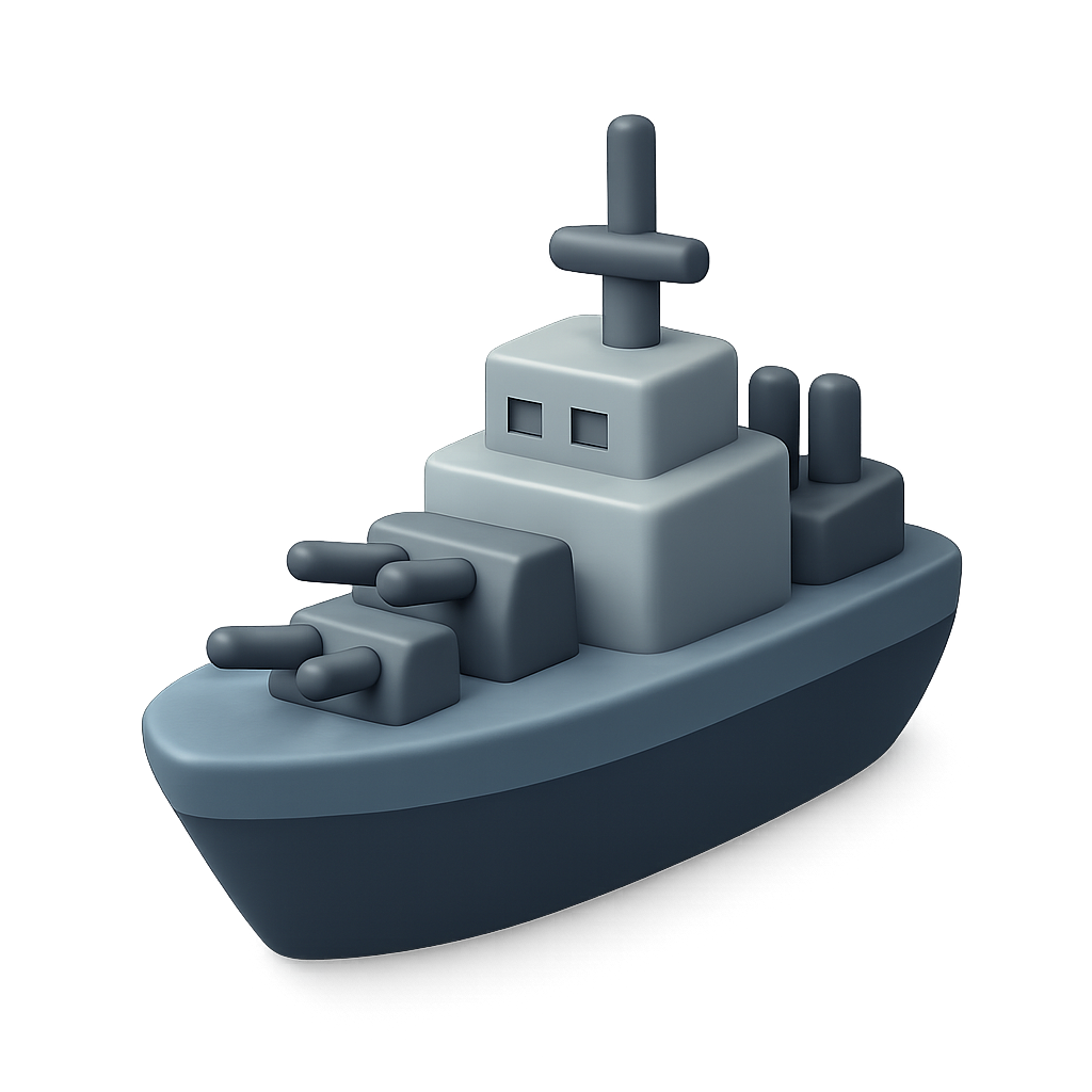 Stylized 3D Battleship Icon with Isometric View