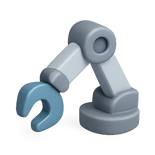A modern, stylized graphic of a robotic arm featuring smooth lines and a minimalist design. Ideal for tech-related projects, presentations, or product mockups.