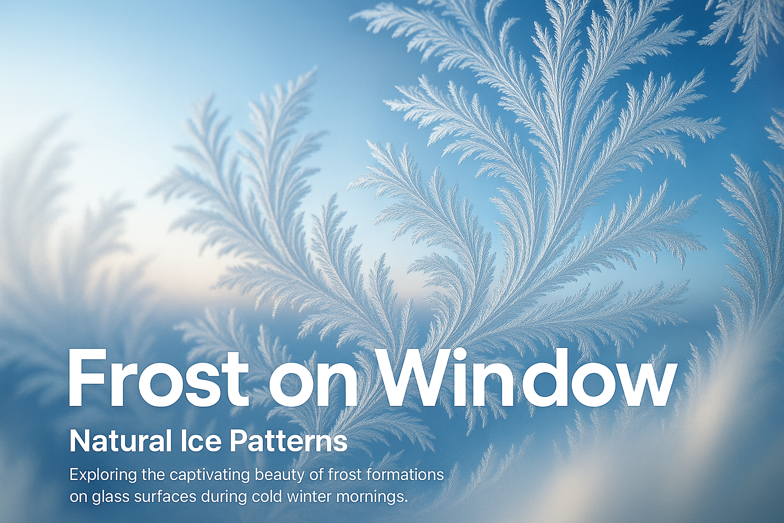 Stunning Frost Patterns on Window Pane Against Morning Sky