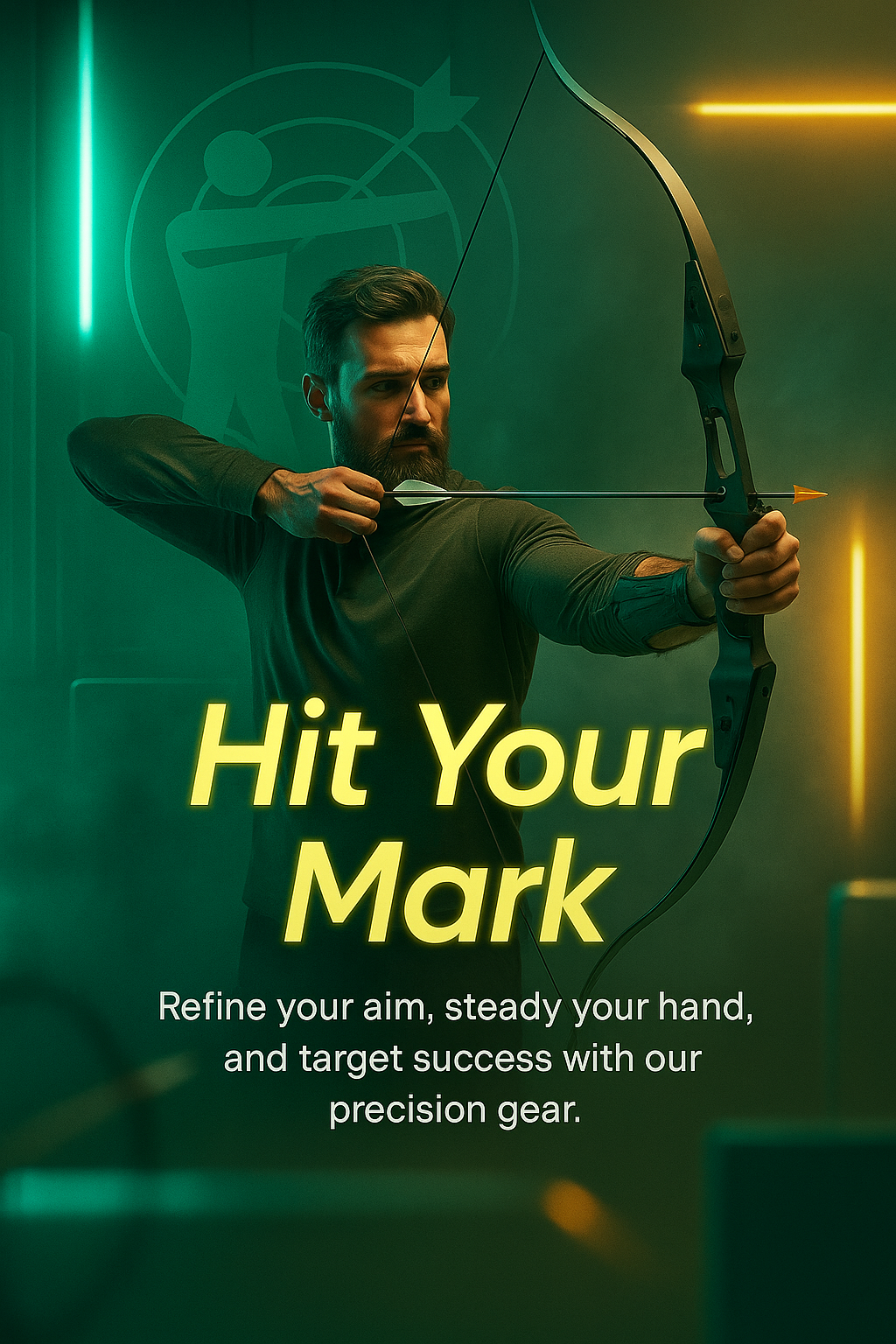 /Collection: /by davooda/Type: PNG/A visually engaging carousel slide featuring an archer aiming with precision. The design incorporates neon accents and a layered composition for depth and clarity.