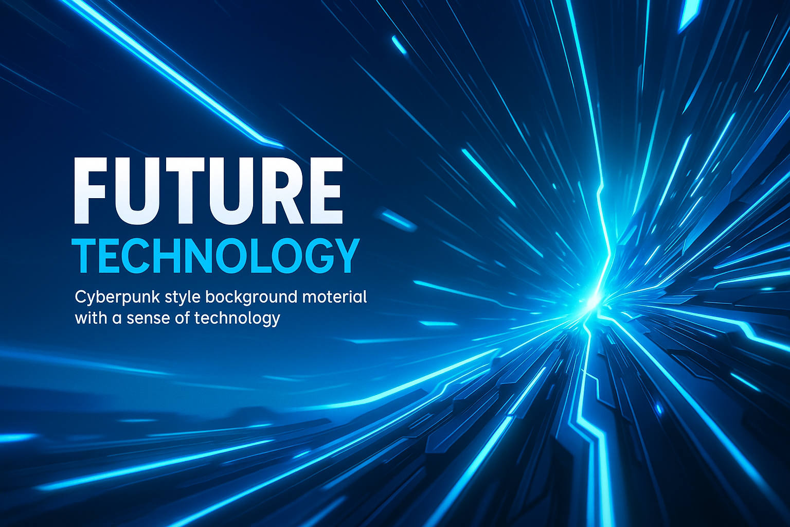 /Collection: /by davooda/Type: PNG/A striking cyberpunk-themed background featuring dynamic light effects and a sleek gradient. The words 'FUTURE TECHNOLOGY' stand out prominently, creating an engaging aesthetic.