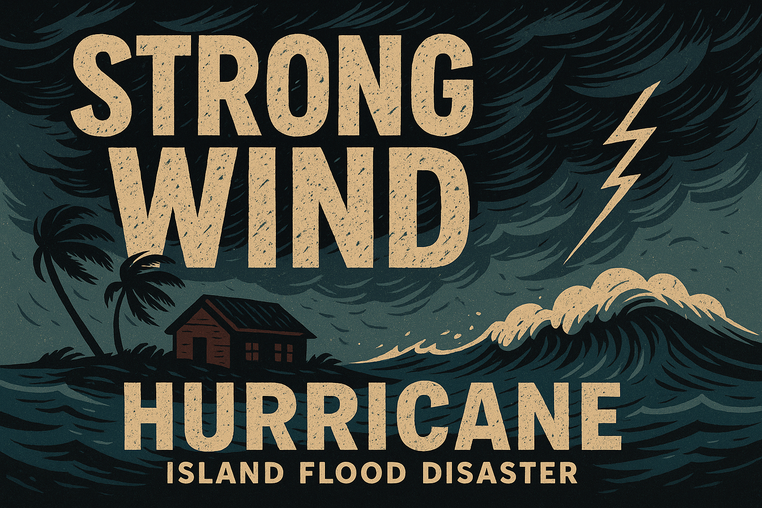 Dynamic Hurricane Landscape Illustration with Bold Title