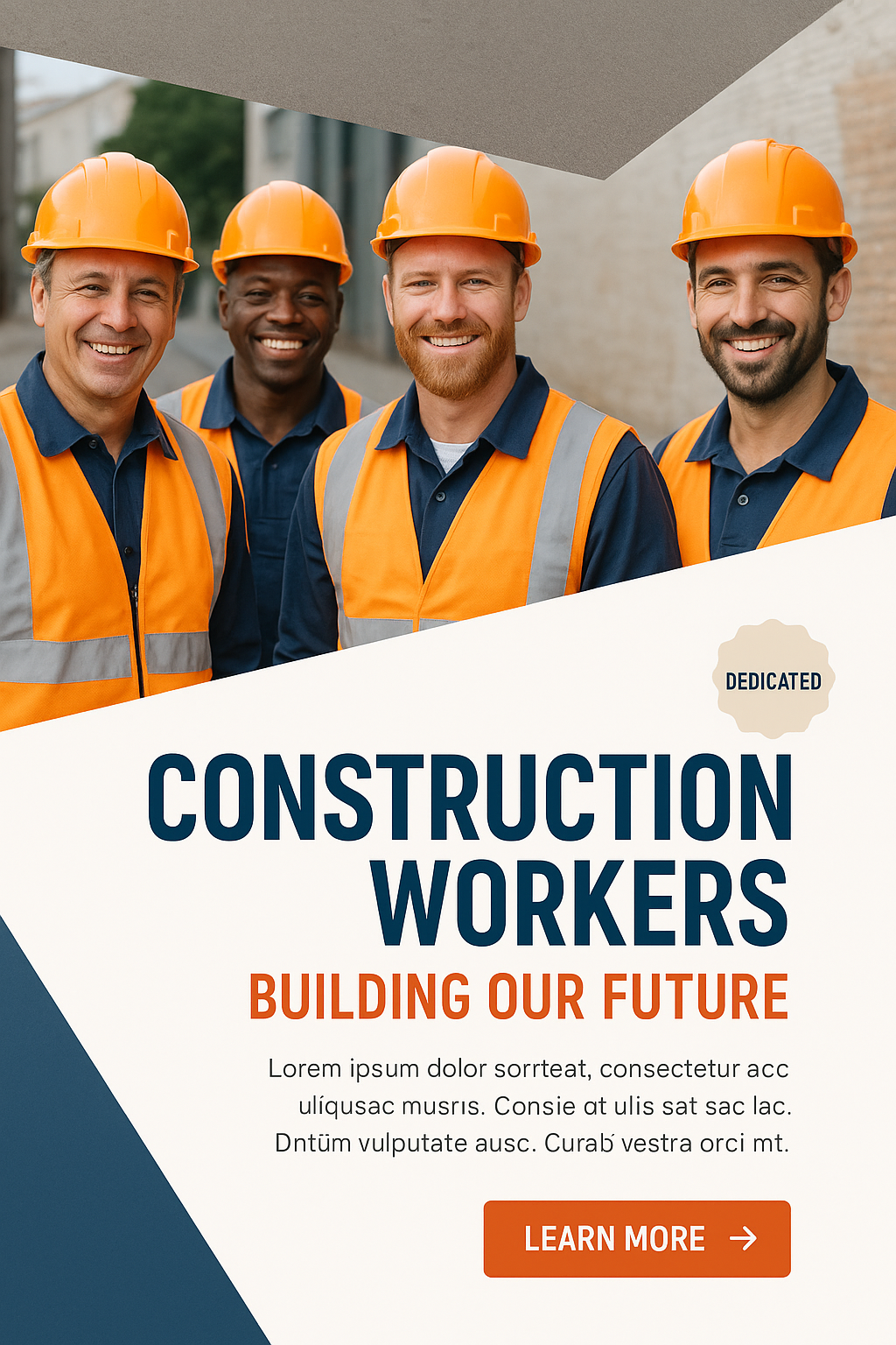 Modern Construction Design with Engineers and Bold Typography