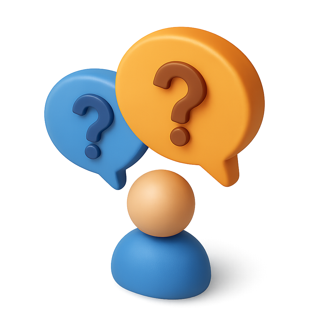 3D Speech Bubbles with Question Marks and Iconic Figure