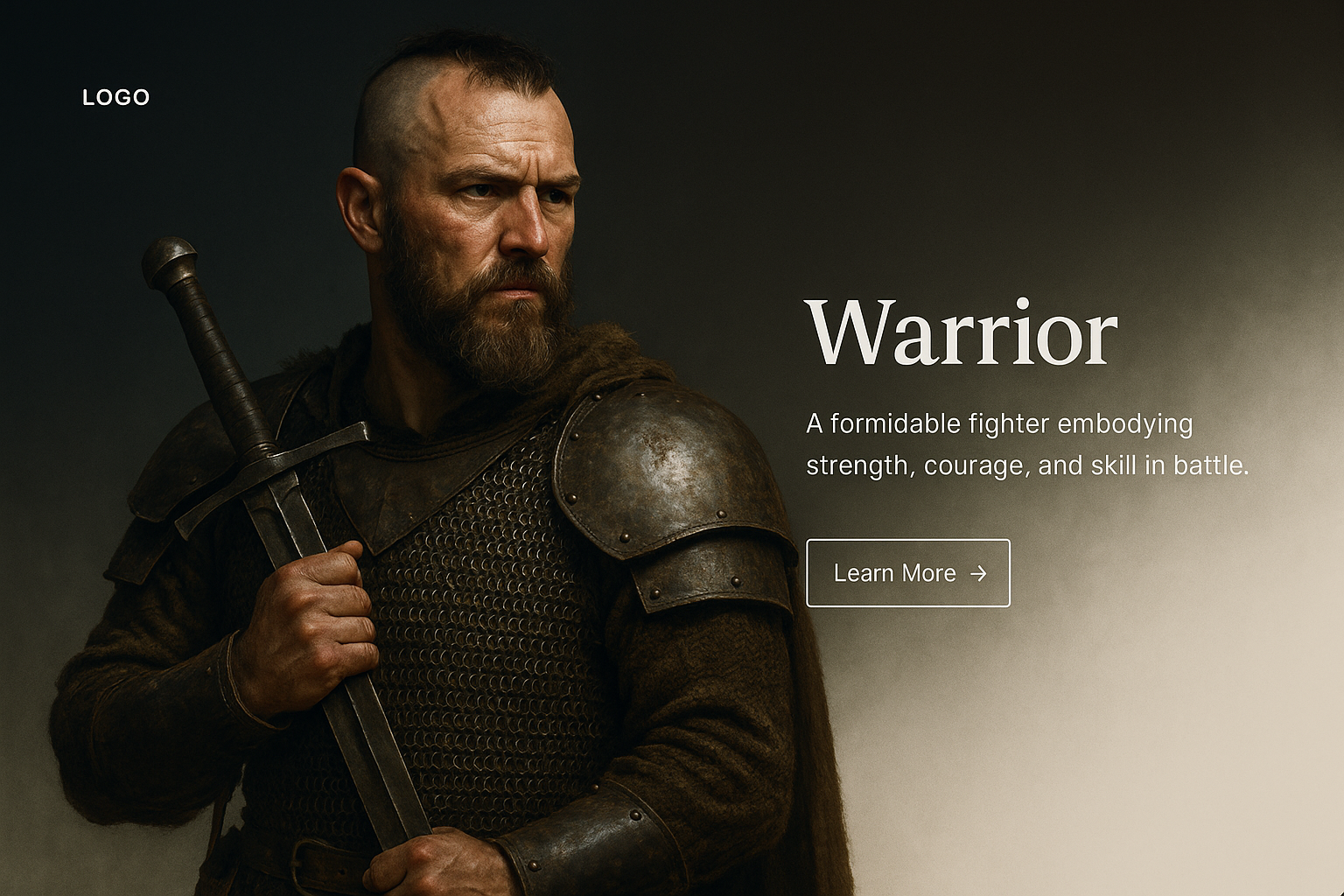 Stylish Warrior Web Design Concept with Realistic Illustration
