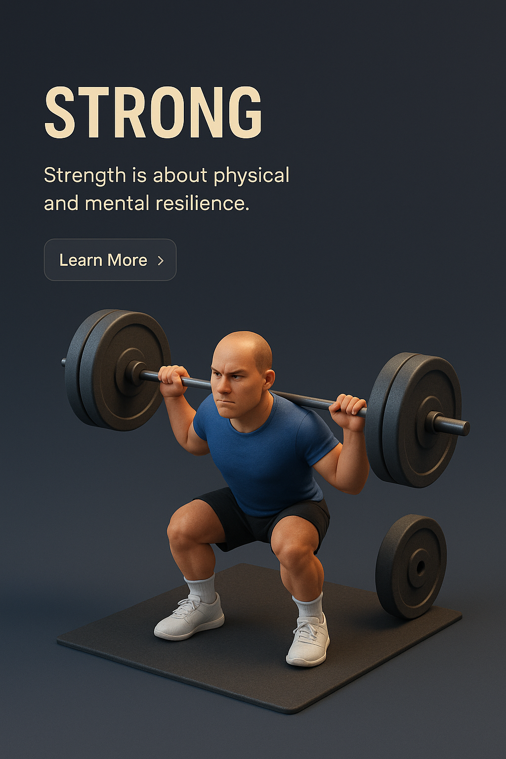 /Collection: /by davooda/Type: PNG/A detailed 3D illustration depicting a person squatting with weights, set against a dark gradient background. Text elements include a bold title and informative text block, designed for high readability.