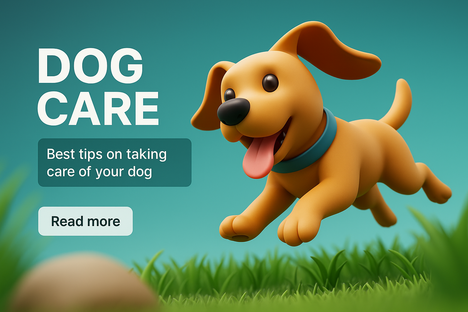 3D Dog Care Illustration with Playful Dog and Informative Text