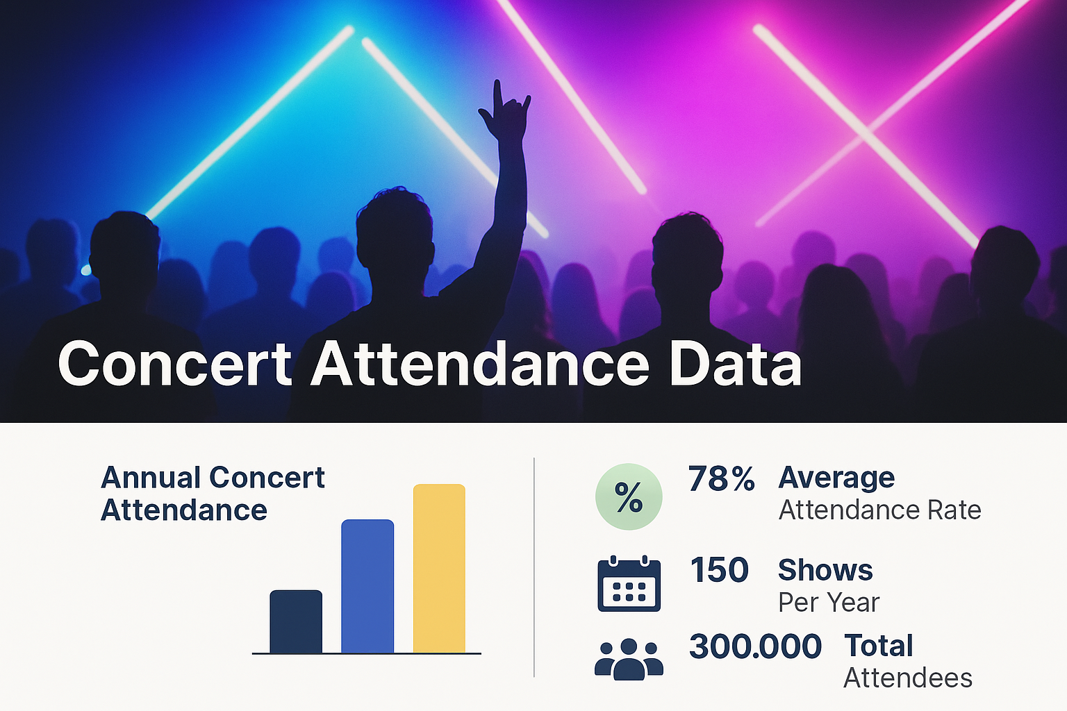Informative infographic showcasing concert attendance statistics with vibrant visuals, ideal for music industry analysis and marketing presentations.