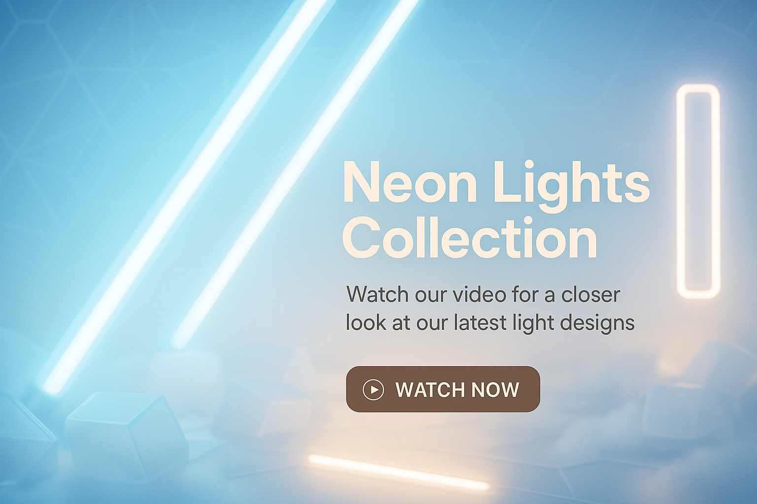 A modern promotional banner showcasing a neon lights collection, featuring sleek design elements and a call-to-action. Ideal for video marketing.