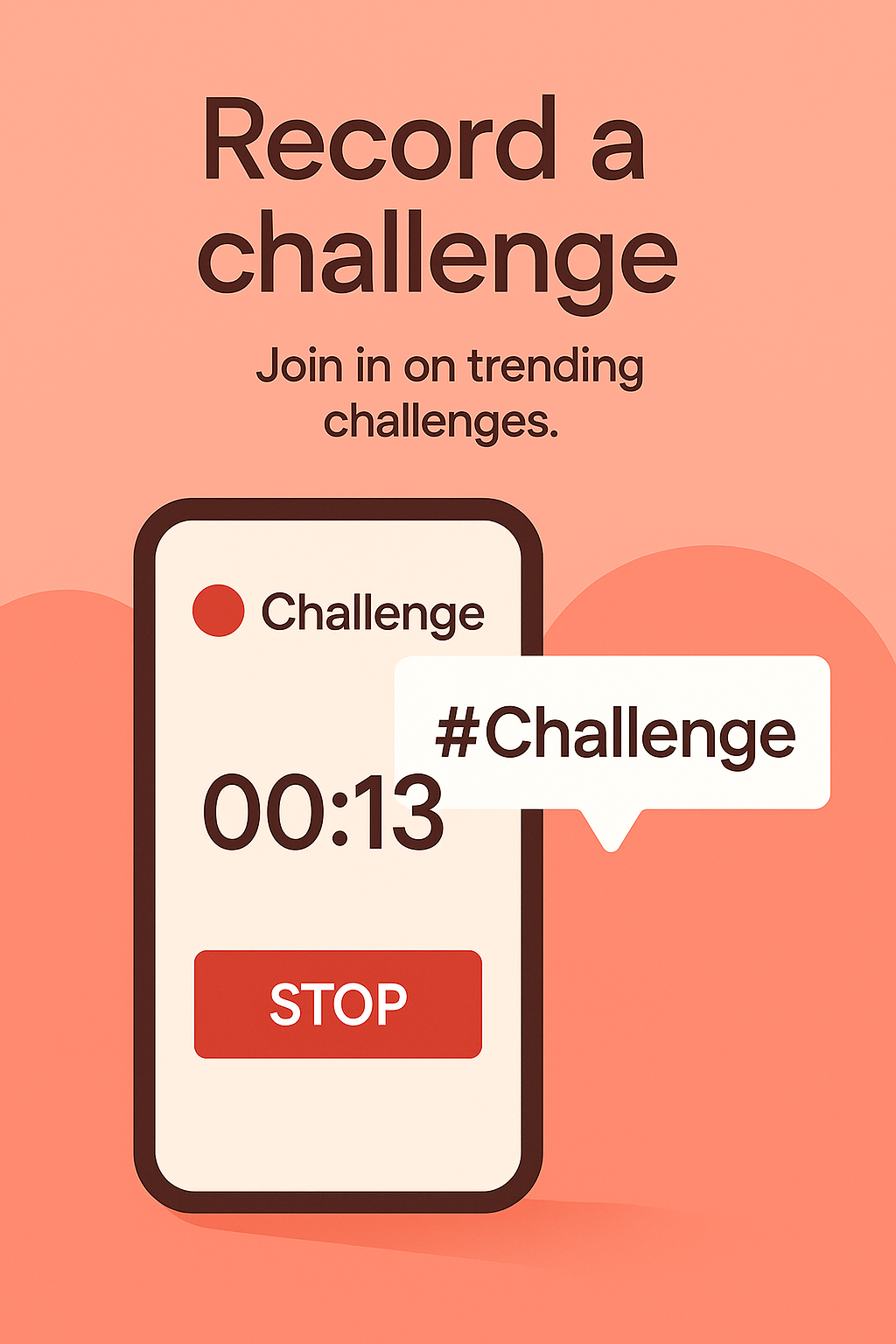 /Collection: /by davooda/Type: PNG/Vibrant social media graphic featuring a timer and call-to-action for recording challenges, designed to engage users and promote trending activities.