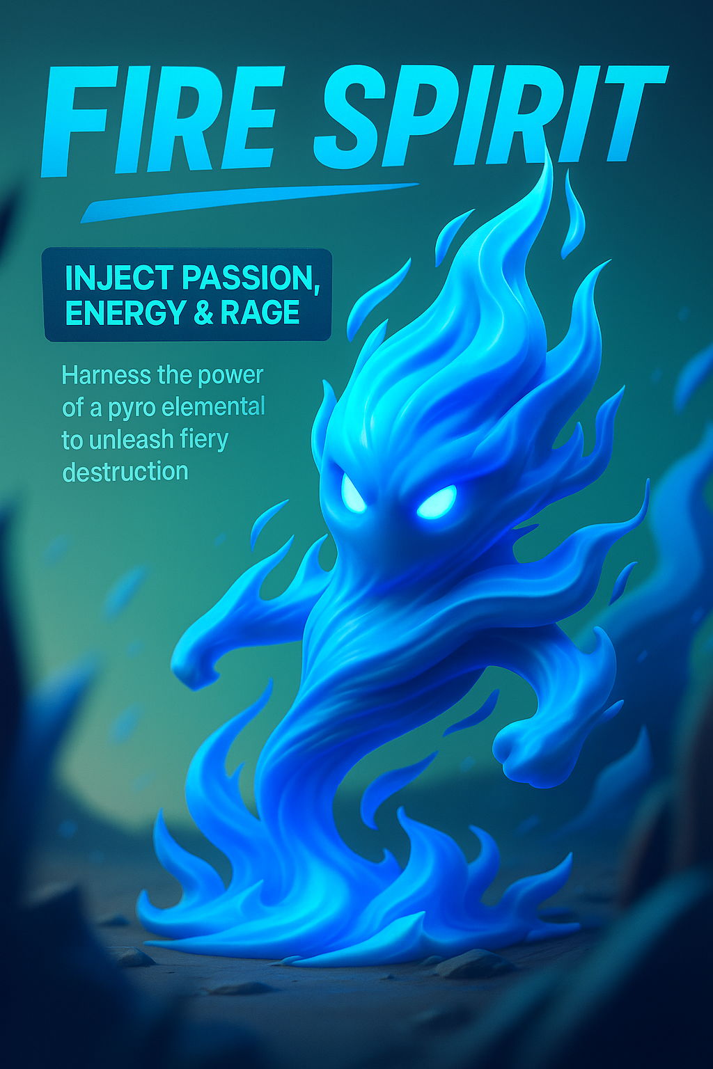 This 3D illustration showcases a vibrant fire spirit, radiating energy and intensity. The design features a smooth gradient background, enhancing the spirit's striking visual impact.