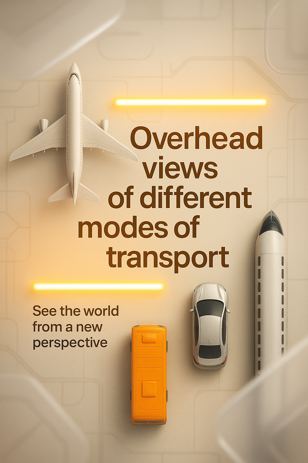 /Collection: /by davooda/Type: PNG/Stylish graphic showcasing different modes of transport from an overhead perspective, featuring clean lines and a contemporary palette. Ideal for educational content or transport-related marketing.