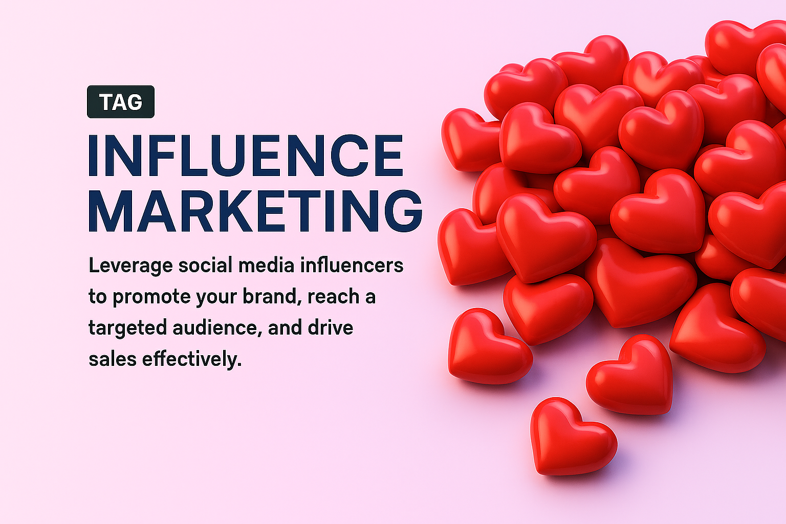 Modern graphic featuring red heart icons representing influence marketing, combined with descriptive text. Ideal for social media and digital marketing content.