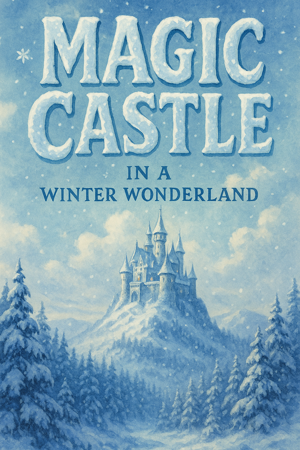 Whimsical Winter Wonderland Illustration Featuring a Magic Castle
