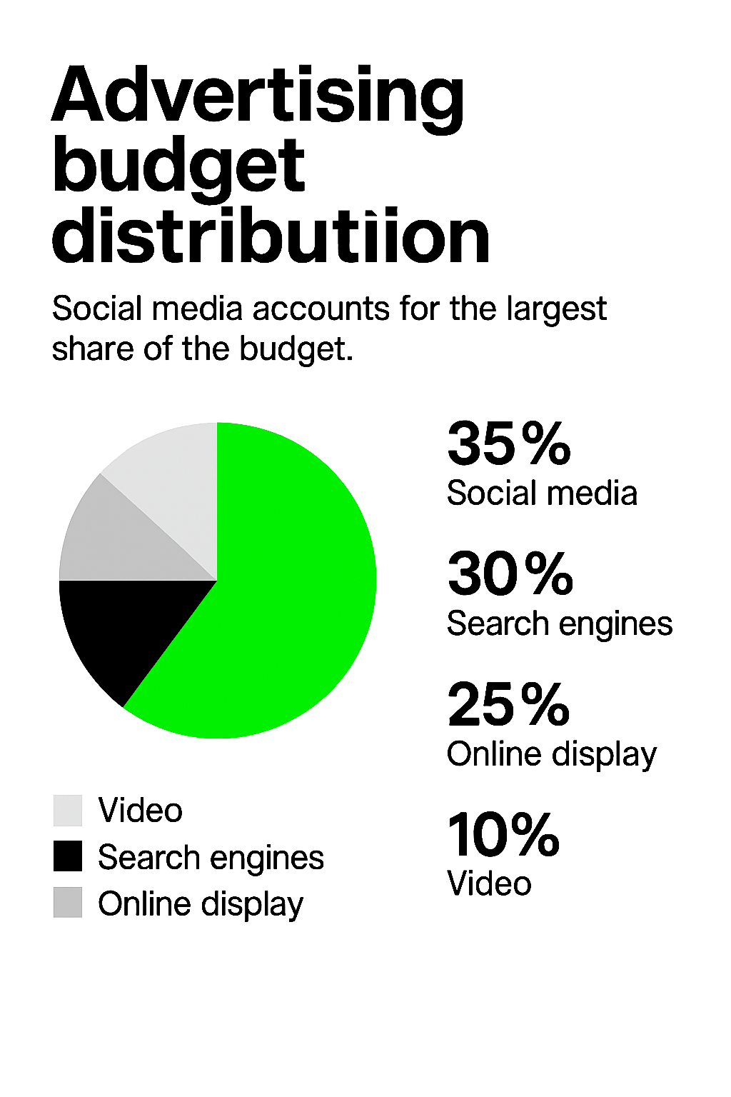 /Collection: /by davooda/Type: PNG/Informative infographic showcasing the distribution of an advertising budget across various platforms, featuring a pie chart with bold colors and clear labeling for easy comprehension.