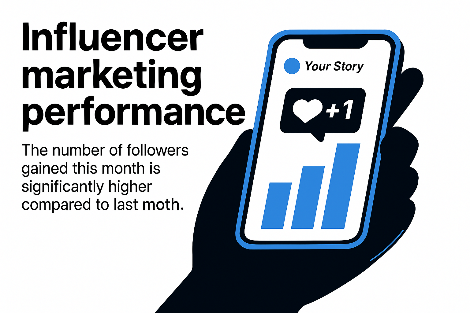 /Collection: /Type: PNG/A modern infographic showcasing influencer marketing performance metrics, featuring a smartphone displaying follower growth statistics. Ideal for digital marketing presentations.