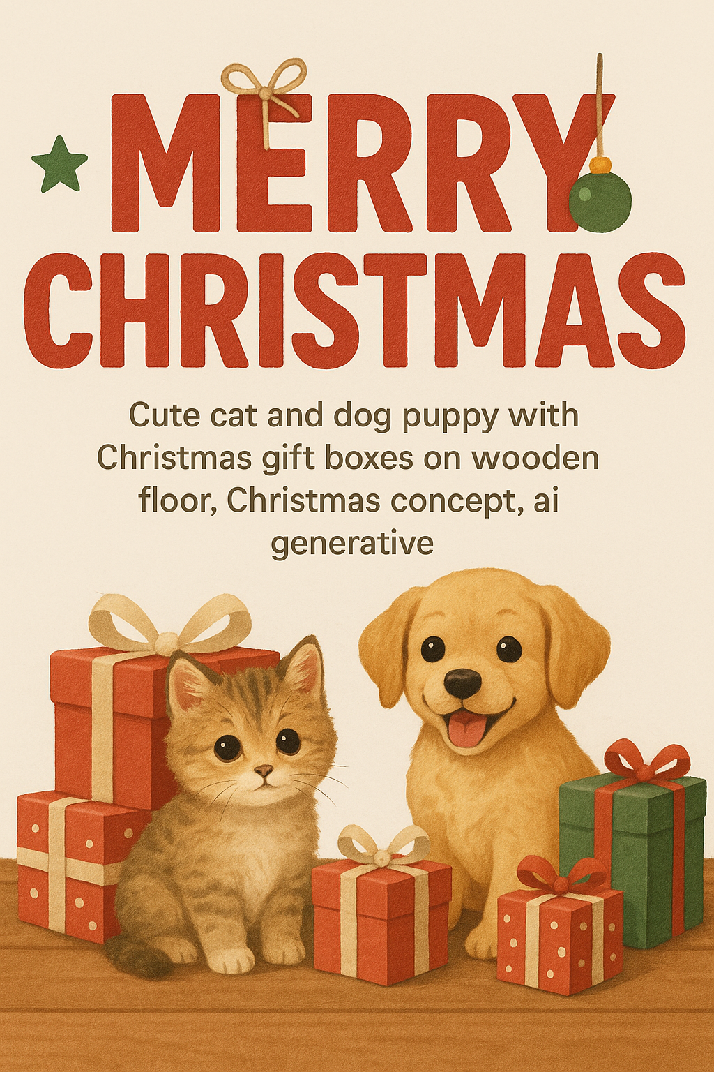Festive Christmas Illustration Featuring Cute Pets and Gift Boxes