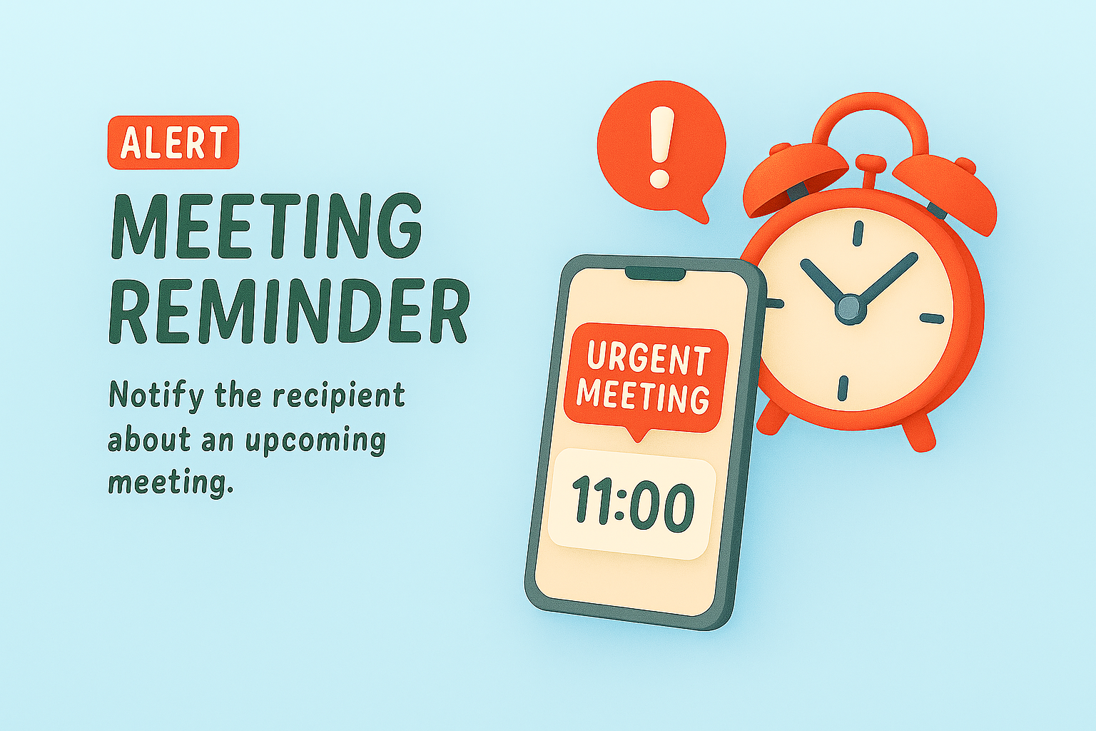 Colorful 3D Meeting Reminder Graphic with Alert Elements