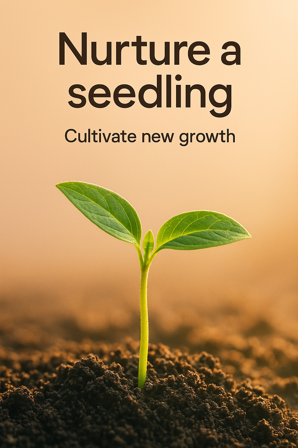 A serene image depicting a young seedling emerging from rich soil, symbolizing growth and nurturing. Ideal for environmental themes, gardening blogs, or motivational content.