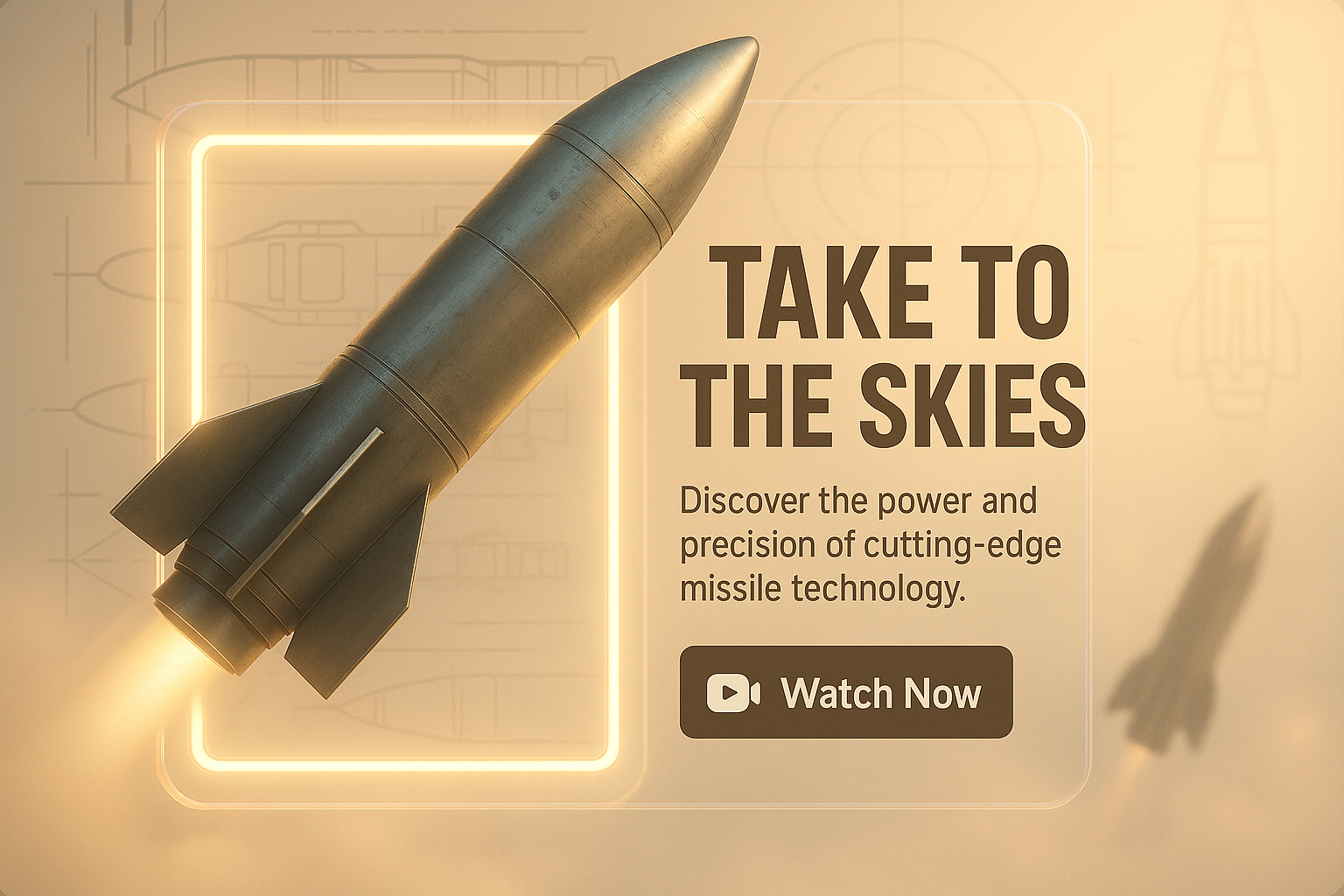 Dynamic promotional graphic featuring a missile launch with modern design elements aimed at technology enthusiasts and defense industry professionals.