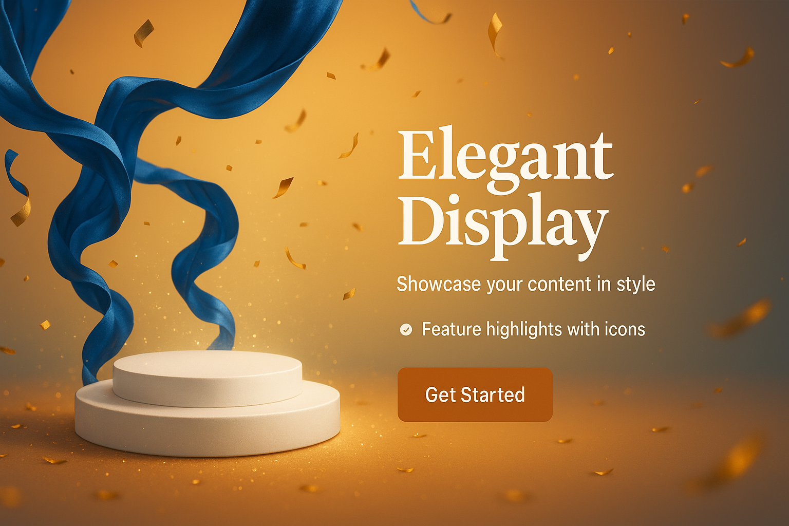 Elegant Product Showcase Banner with Ribbons and Confetti