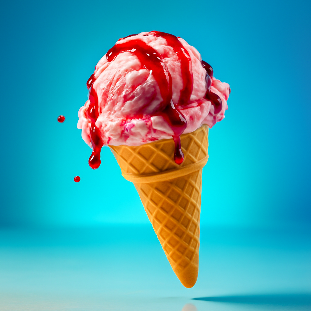 Dynamic Ice Cream in Mid-Air with Bright Background