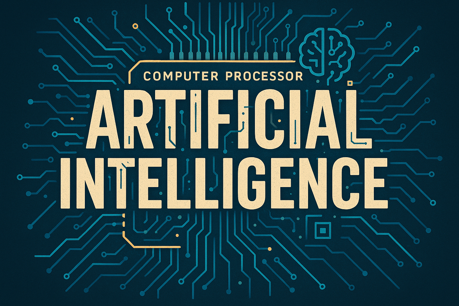 Stylized graphic representing artificial intelligence with circuit patterns and a brain illustration. Ideal for tech-related content, showcasing innovation in AI technology.
