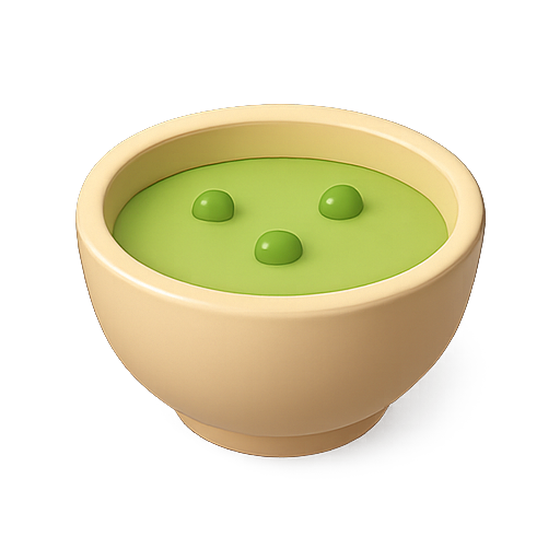 /Collection: /by davooda/Type: PNG/The image features a minimalist design of a bowl filled with vibrant green soup, accented by three green spheres on top. Ideal for culinary presentations or food-related content.