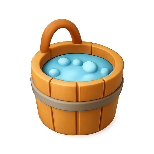 A visually appealing 3D rendered bucket filled with blue water and bubbles. Ideal for use in digital illustrations, games, or educational materials related to cleaning or water activities.