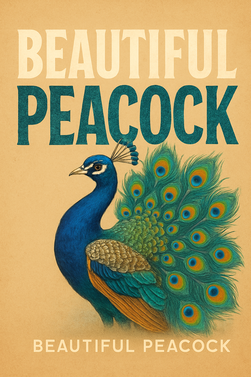 /Collection: /by davooda/Type: PNG/Vibrant and colorful illustration of a peacock with intricate feather details, set against a warm background, suitable for artistic projects or decorative purposes.