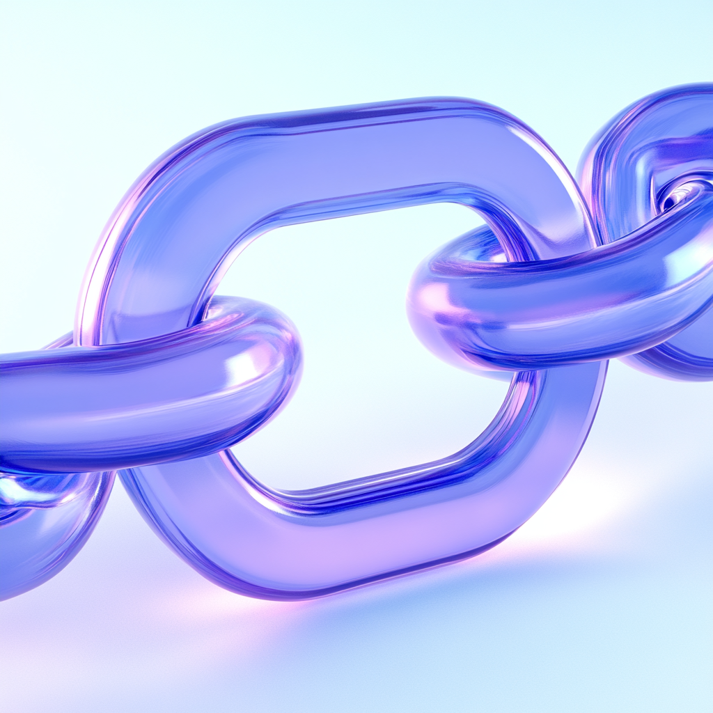 Stylized 3D rendering of a glossy chain link, featuring a gradient of purple hues. Ideal for tech-related graphics, digital art, or branding.