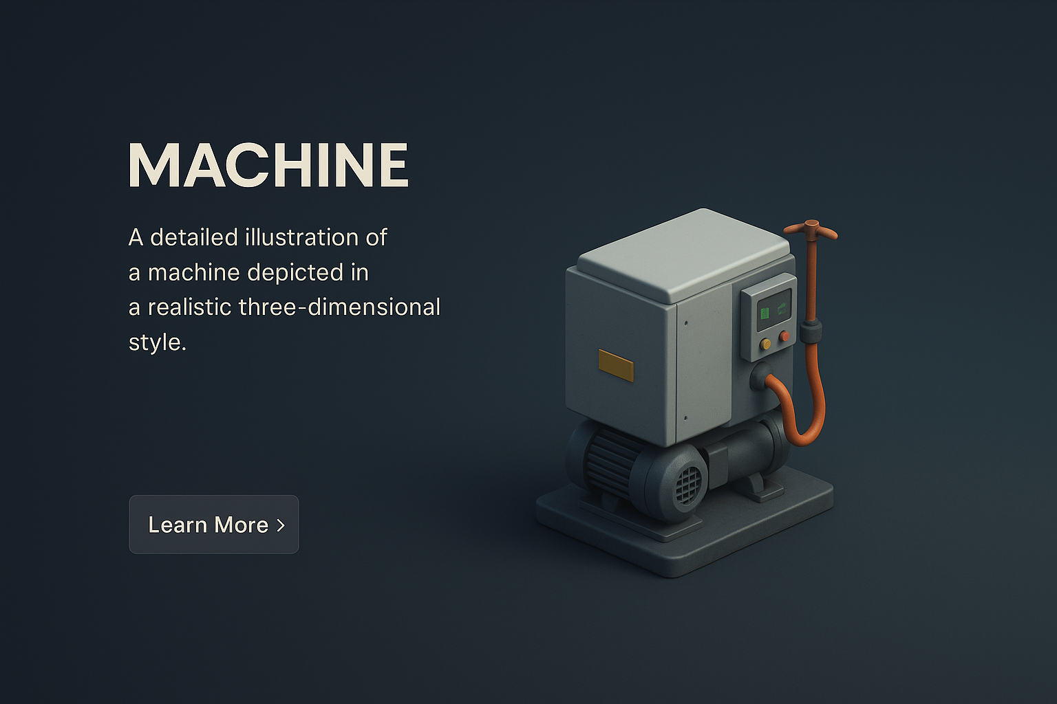 /Collection: /by davooda/Type: PNG/A detailed 3D representation of a machine in a realistic style, set against a dark gradient background. The machine features buttons and pipes, creating an engaging visual.