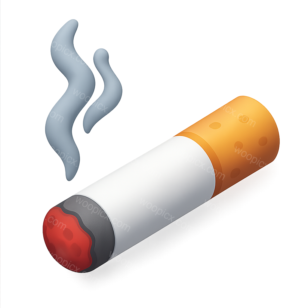 A 3D representation of a cigarette with a transparent background, showcasing a three-quarter view. The design features smoke rising from the tip, enhancing its volumetric appearance.
