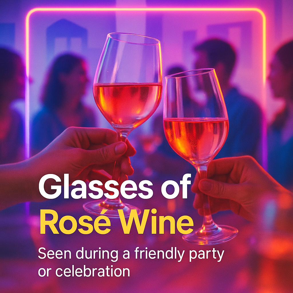 Vibrant image depicting a toast with glasses of rosé wine, set in a festive atmosphere ideal for social gatherings or celebrations. The colorful background adds to the celebratory mood.