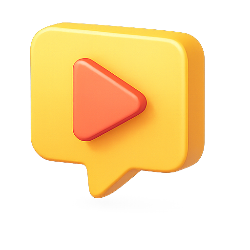 A vibrant 3D icon featuring a play button inside a speech bubble, ideal for digital media applications and video content promotion.