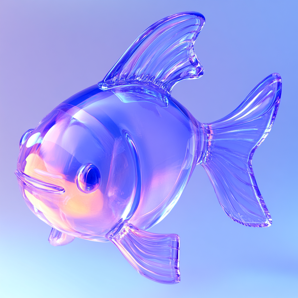 A vibrant, stylized 3D rendering of a glass fish featuring smooth curves and a gradient color palette. Ideal for digital art showcases or aquatic-themed projects.