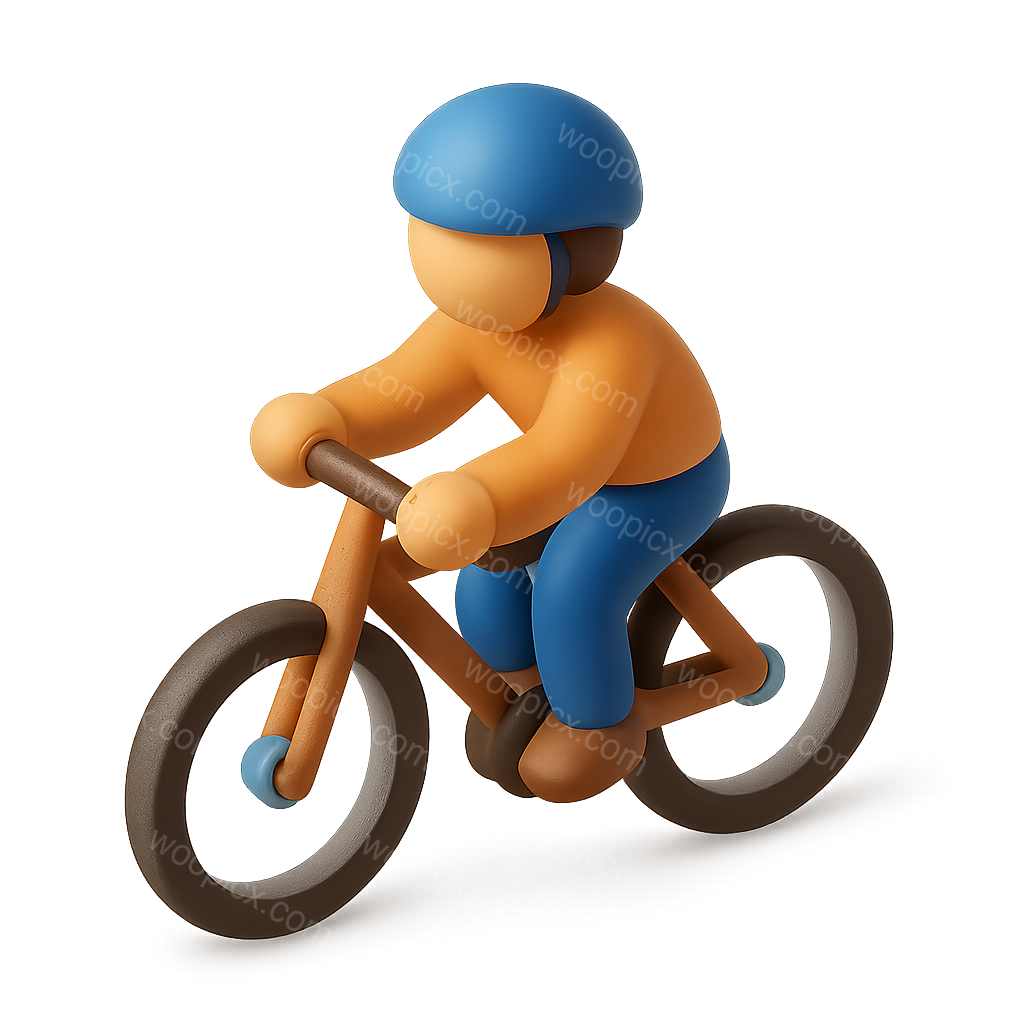 /Premium/Collection: /by davooda/Type: PNG/A vibrant 3D icon depicting a person riding a bicycle in a three-quarter view. The figure features a blue helmet and an orange shirt, showcasing a playful design against a soft gradient background.