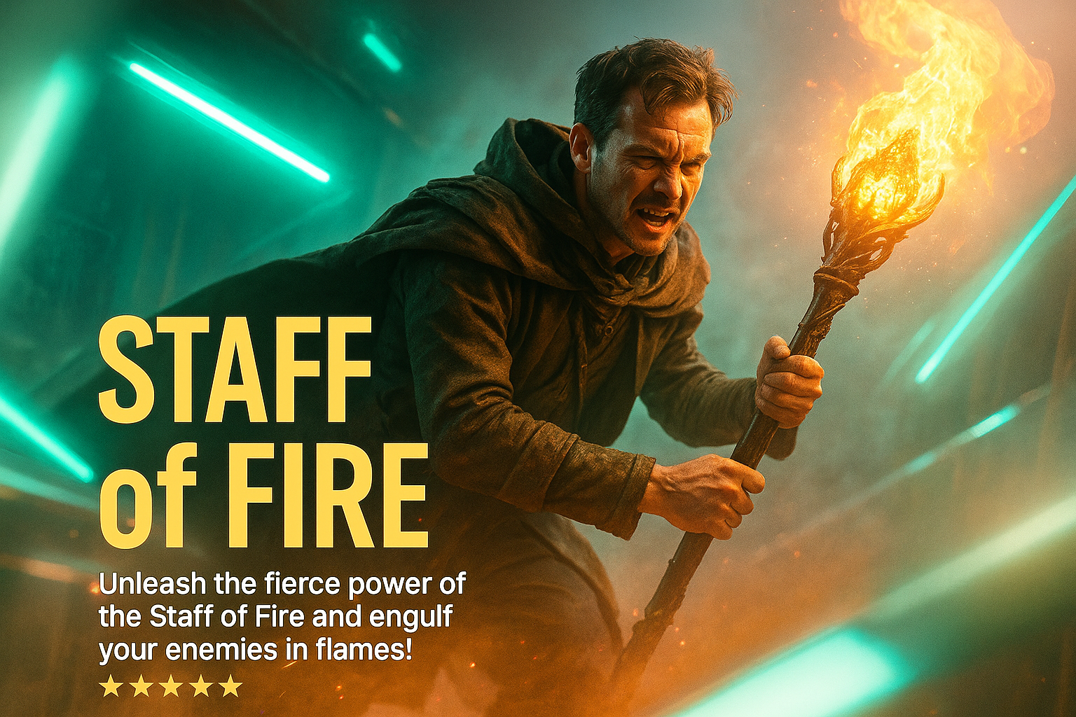Dynamic Neon Fire Staff Illustration for Promotional Carousel